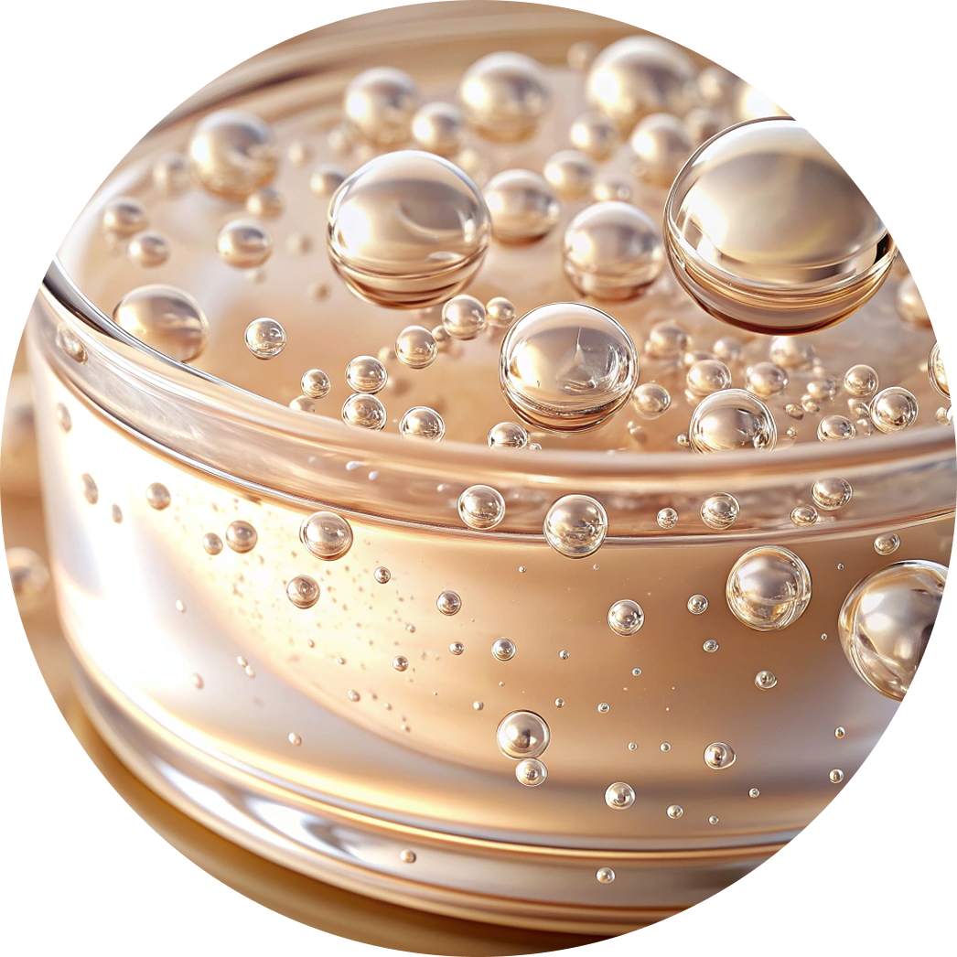 A powerful lipid antioxidant that shields skin from UV and environmental damage. It moisturizes, soothes, and enhances skin repair while amplifying the penetration of active ingredients. Together with Vitamin C, it forms a dual shield against oxidative aging.